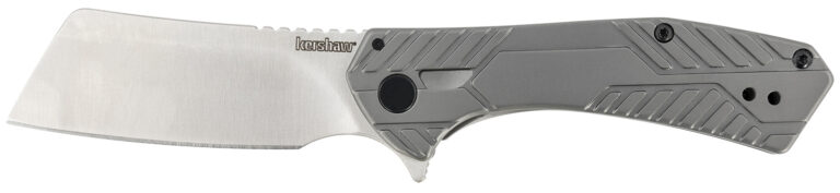 The Static offers dynamic performance. With its cleaver-shaped blade, it excels at cutting, slicing and chopping. The satn stainless steel blade features a slightly curved belly, one-handed opening with KVT ball-bearings and a flipper. The gray PVD coated, stainless steel handle features angled machining that adds to the knifes good looks and provides traction for a solid grip.