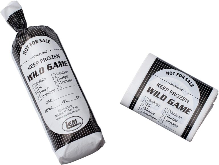 Pack your wild game meat the easy way. Quality opaque polyethylene bags have a 1 1/2" bottom gusset for added burst protection. The heavy 2 mil thickness guards against freezer burn. When filled and frozen they stack neatly in the freezer. Seal bags with our Poly Bag Taping Machine and Poly Bag Tape – or seal with Hog Rings and Pliers. "NOT FOR SALE" printed on all bags. 1 lb. bags are 11" long x 4-1/4" wide