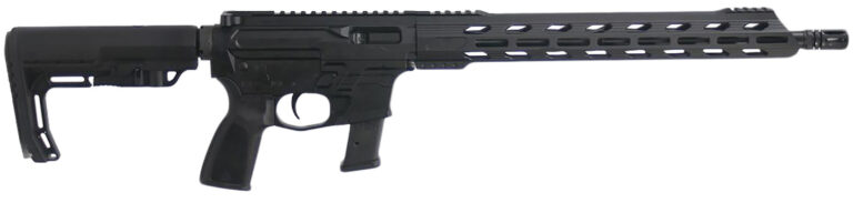 The Live Free Armory Challenger 9mm PCC operates on a straight blowback system and does not require a gas block and gas tube as traditionally found in other AR15s. The direct blowback system uses the kinetic energy generated from the discharge of the cartridge, to push the bolt back and cycle the action. The Challenger is compatible with standard frame Glock G17/G19 pattern magazines. The receivers are machined from 6061-T6 billet aluminum; free float handguard measures in at 15in M-lok compatible and free float handguard. Includes magazine & hard case.