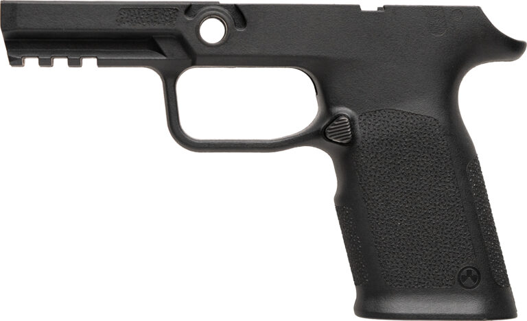 The Magpul EHG SG9 Full Size grip frame for the SIG Sauer P320 functions with OEM P320 trigger modules, OEM 17-round magazines and magazine base plates, and small components and accessories.