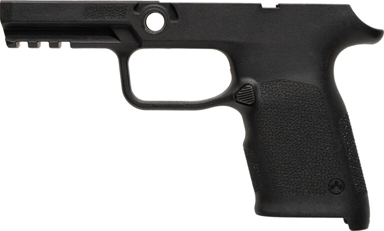 The Magpul EHG SG9 Compact grip frame for the SIG Sauer P320 functions with OEM P320 trigger modules, OEM 15-round magazines and magazine base plates, and small components and accessories.