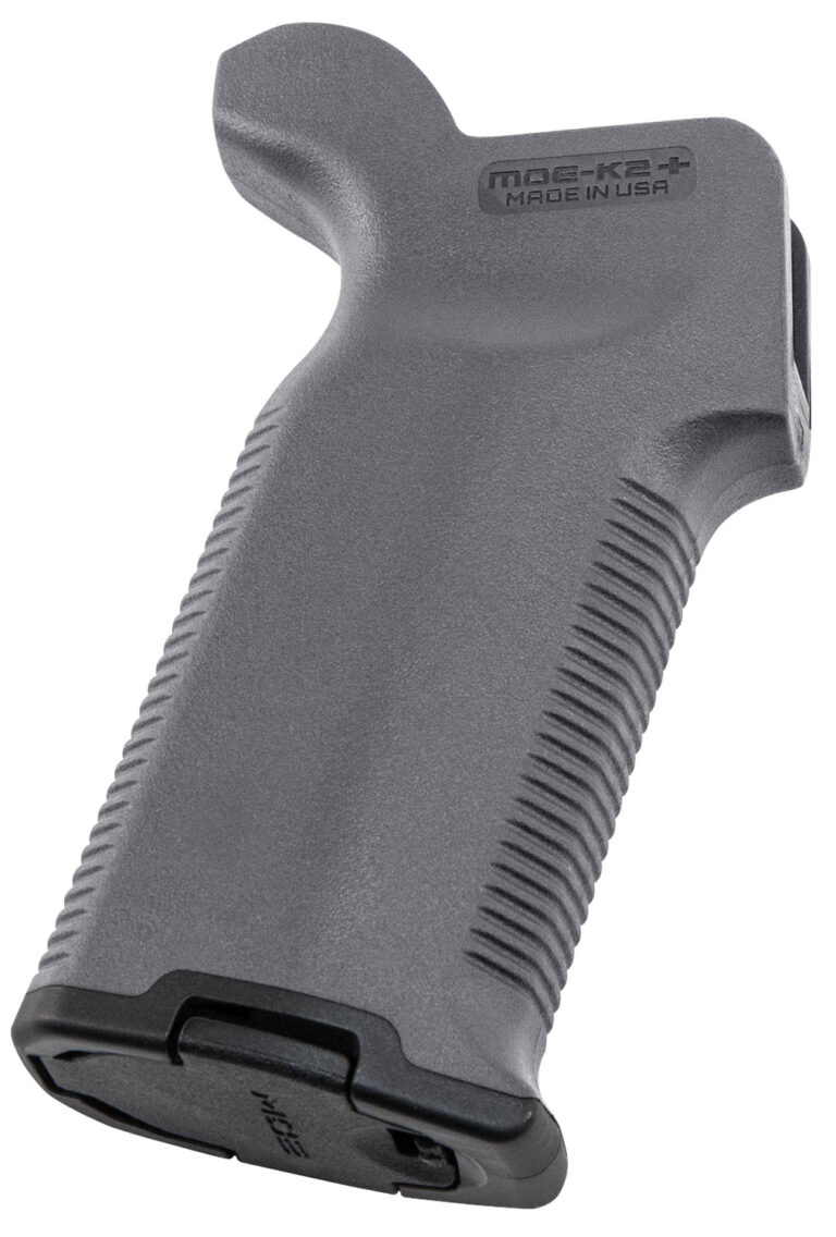 Made in the USA, the MOE-K2+ Grip combines reinforced polymer body construction with comfortable, wrap-around rubber overmolding for maximum weapon control in adverse environments. Similar in concept to the smaller MOE-K, the MOE-K2 is a drop in upgrade for AR15/M4’s that offers a more vertical grip angle, but in a full-size grip design. The steeper vertical grip angle is optimized for use on PDW (Personal Defense Weapon) configurations and improves comfort and control on short LOP rifles that bring the primary hand in closer to the shooter’s body. With the rubber overmolding for positive weapon control, compatibility with optional Storage Cores for gear stowage, and a unique backstrap design for proper trigger finger placement, the K2+ brings modern styling, ergonomics, and comfort to the AR platform. All mounting hardware and a basic grip cap included.