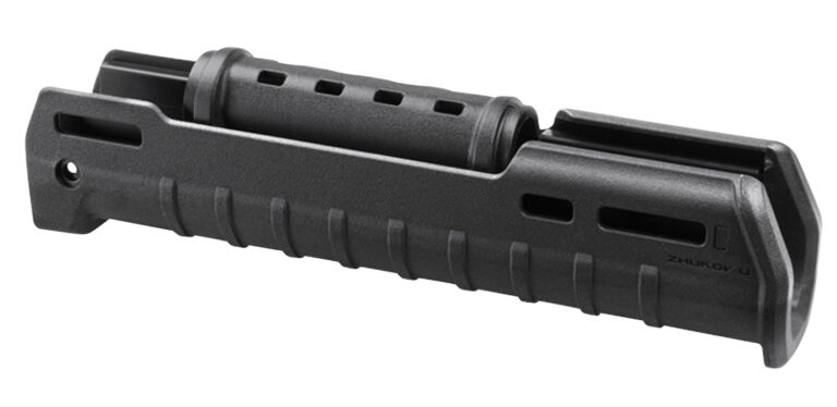 The Zhukov-U Hand Guard shaves off 1.5″ from the original Zhukov AK Hand Guard to accommodate shorter barreled rifles and pistols and keeps the front end of full length rifles a little more lively. The shorter version also allows us to accommodate the military issue cleaning rods. The Zhukov-U Hand Guard offers an extended option for modern shooting techniques, polymer outer, aluminum chassis for strength and heat dispersion, a comfortable injection molded exterior for superior ergonomics, extended length provides large gripping surface for modern shooting techniques and M-LOK slots at the three, six and nine o’clock positions for mounting direct-attach M-LOK accessories or M-LOK 1913 Picatinny rail sections. Full length, hard anodized, aluminum chassis clamps directly to barrel and provides for flex-free mounting as well as excellent heat shielding. Includes replacement polymer top cover, compatible with UltiMAK Optics Mount top cover. *Note- The Zhukov-U Hand Guard requires the permanent removal of the factory hand guard retaining cap and forward sling mount if so equipped. Please ensure your barrel diameter under the hand guard falls between 16.75-18.25 millimeters before cutting your retaining cap. Warning- due to extended Hand Guard length, barrels less than 11.5″ long are not recommended. Made in USA.