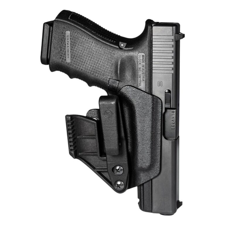 Mission First Tactical's Minimalist Holster is a low profile holster with all the performance and reliability of a full-size holster. For use Inside the Waistband (IWB) in the Appendix and 5:00 positions. Both right & left-hand positioning is accomplished with the removal of the claw and use of provided spacer. The claw for right handed shooters keeps the heel of the firearm pressed into your side minimizing it's print. The famous audible click with added side retention makes each draw smooth and secure ideal for Concealed Carry. Each holster is handmade to precise tolerances for each model of handgun using the most advanced techniques and materials for an all-day comfortable carry. Holsters include a Tuckable Belt Clip that accommodates a 1-1 ½" belt. Or remove the clip and claw and add a static-line tether keeping the trigger secure while using the firearm inside a night stand safe purse briefcase vehicle console etc.