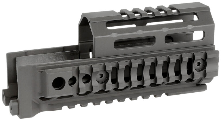 Next generation Midwest Industries AK drop-in handguard is developed for full flexibility. Full handguard, bottom handguard only, MI AK Alpha Series optic and top cover accessories, and railed gas tube configurations. Adjustable design fits on most AKM firearms with stamped receivers, designed heat shield included with each MI AK Alpha Series handguard. There are multiple QD points for sling attachments. Constructed from lightweight Hard Coat Anodized 6061 Aluminum for a lifetime of service, 1913 rail space for accessory mounting across handguard.