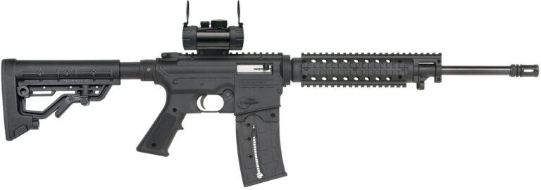 These Mossberg Flat Top Tactical .22 provide the look, feel and excitement of the AR platform, built around their proven and dependable .22 long rifle autoloader. Featuring an 16.25″ blued barrel with a 1:16″ RH twist and removeable muzzle brake. The magazine is detachable and has a capacity of 10 or 25 rounds. The 25 round models comes with an accessory magazine loading cap. The stocks are available in fixed or adjustable. The adjustable model will adjust nearly 4″ to accommodate smaller frame shooters. All models feature a Picatinny quad rail forend for customizing your rifle with an endless array of available tactical accessories.