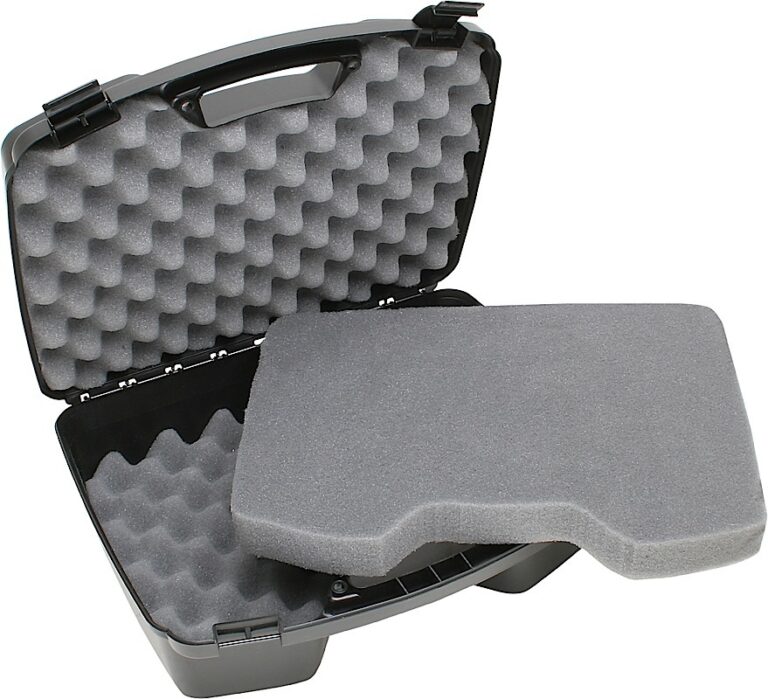MTM 4 Pistol Handgun case with durable construction, these affordable, stylish foam-lined cases offer reliable latches and large comfortable handles. Made of rugged polypropylene, they are scratch resistant. There is room in the case for a trigger lock (not included) and it is padlock tabbed for security. Holds up to four handguns with 8″ barrels or 6 sub-compacts with magazines. Made in the USA.