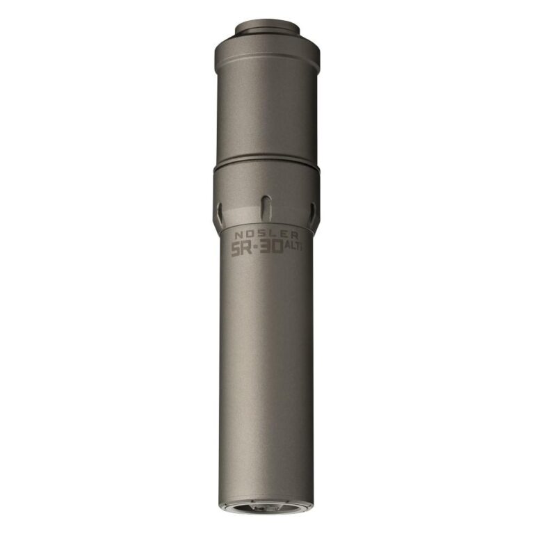 The Nosler SR-22Ti is a premium suppressor engineered for all .22 caliber platforms including 5.56mm rifles. Constructed entirely from titanium it offers exceptional durability while maintaining a lightweight profile at 12.8 ounces. Measuring 7.533 inches in length and 1.740 inches in diameter the SR-22Ti effectively reduces noise protecting your hearing and minimizing disturbance to game during hunting. Its modular design allows for easy disassembly facilitating maintenance and cleaning. The suppressor features a 1/2×28 thread pitch ensuring compatibility with a wide range of firearms.