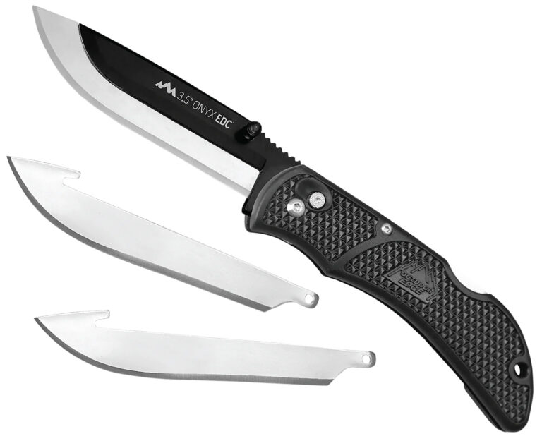 The Onyx 3.5″ Replaceable Blade is a versatile and indispensable tool for every outdoor enthusiast. This compact and rugged knife is designed to handle a wide range of tasks, from field dressing game to everyday cutting needs. With its innovative replaceable blade system, the Onyx ensures you’re always working with a razor-sharp edge. The Onyx comes with three blades in total and is compatible with 350 blades.