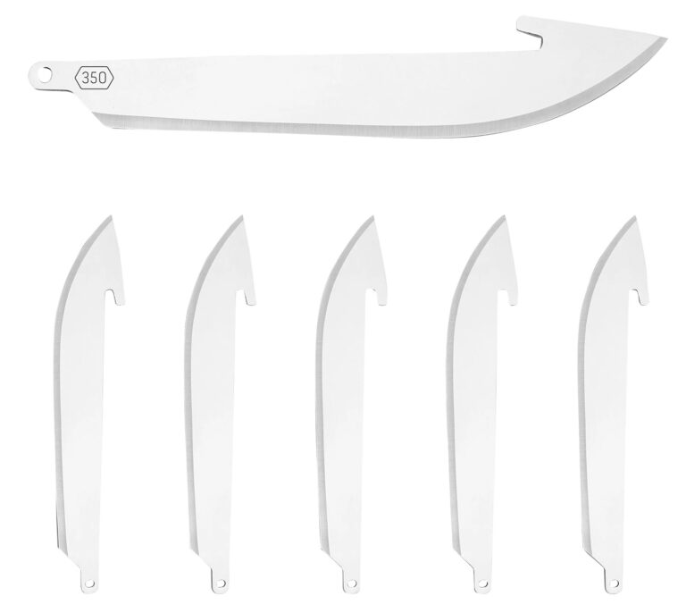 Set of 6 Japanese 420J2 stainless steel replacement razor-blades. Each blade is precisely heat treated and hand finished to a surgically-sharp cutting edge. These blades fit all 3.5″ models of Outdoor Edges RazorSafe Series including the RazorLite, RazorBlaze, 3.5″ RazorLite EDC, RazorPro and Onyx EDC.