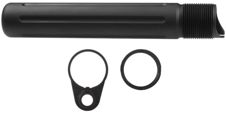 Weight- 4.3 oz. Mil-Spec tube diameter Impact Extruded 7075 Aluminum Extended Carrier Support Lip For Smoother Cycling Smooth Pistol Buffer Tube Lightening Cuts Reducing Weight By Approx. 1 Oz. Off Mil-Spec Unique Fluted Tube Design For Debris Clearing MIL-A-8625 F, Type III, Class 2 Anodized Includes PWS Ratchet Lock Castle Nut & End Plate Set