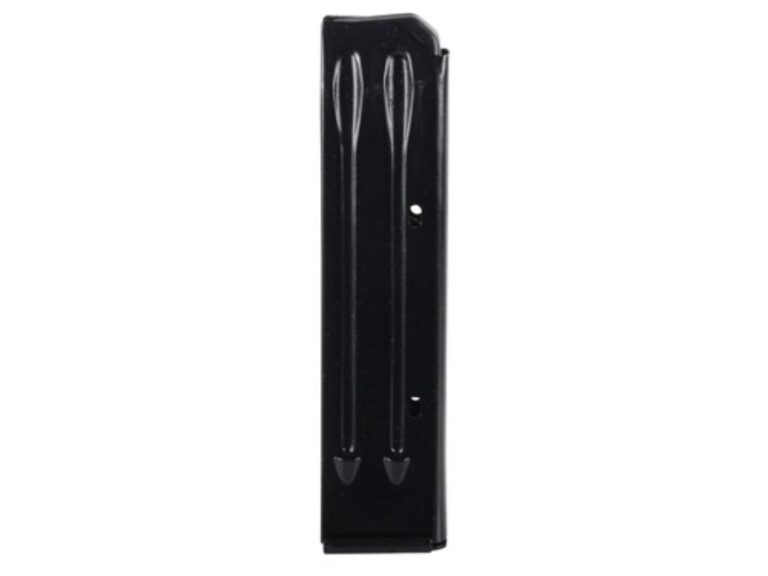 A 10-rd .45ACP caliber magazine for the .45 UZI carbine / SMG. The magazine body is constructed of heat treated steel with a black oxide finish. A heat-treated Chrome-silicon wire spring and precision molded polymer follower ensure reliable feeding and function.Made in the U.S.A.
