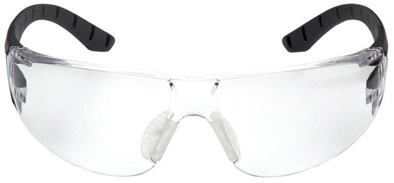 Lightweight and durable protective eyewear. Built-in brow guard shields against overhead particles. Special dielectric hinge design contains no metal parts. Curved, co-material temples allow for comfortable all day wear. Scratch resistant H2X anti-fog, polycarbonate lens provides 99% UVA/B/C protection. 9.5 base one-piece wraparound lens provides excellent side protection. Soft and adjustable nose piece provides a customized fit to prevent slipping.