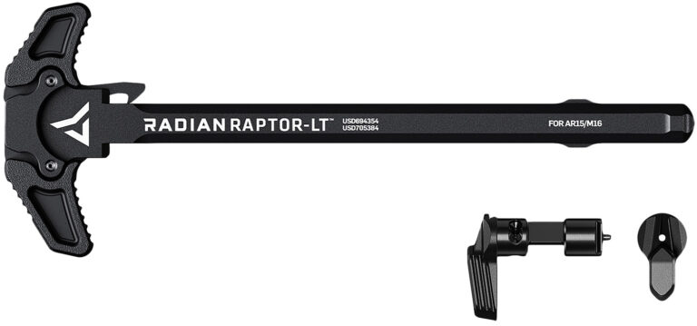 The Raptor-LT handles are machined from 7075 aluminum, MILSPEC Type III hard anodized, then over-molded with high-strength, fiberglass reinforced polymer for the ultimate combination of strength, weight, and durability. This model includes a Talon safety.