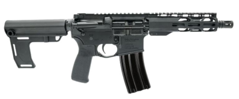 The Radical Firearms complete AR-Pistol is a fully Mil-Spec AR-15 pistol built using law enforcement grade upper receivers and mil spec lowers. The 4140 chromoly vanadium steel barrel is Melonite treated for a harder-than chrome finish. This same finish is applied to the bolt carrier groups, helping to reduce receiver wear and increase reliability. The bolt heads are MIL-STD and MPI for quality assurance. The full-length, free-float handguard keeps your hands cool and provides plenty of room for accessories. This model has a 7.5″ barrel, Radical Firearms 7″ RPR handguard with Magpul M-LOK slots on sides and bottom of the rail.