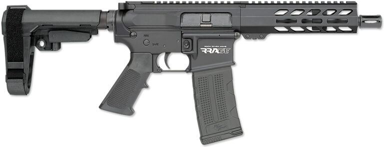 The Rock River Arms RRAGE features a forged LAR-15 lower receiver; extruded A4w/port door. no forward assist upper receiver; threaded barrel; A2 flash hider; SB Tactical SBA3 adjustable stabilizing arm brace and a lightweight aluminum 7.25″ free floating handguard. Includes 30rd magazine and manual.