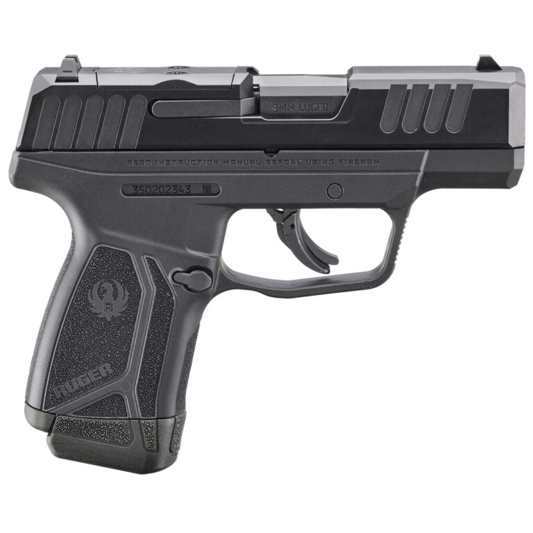 Ruger MAX-9 9mm 3.2″ Black Optic Ready Fixed Front Sight; Drift Adjustable Polymer Rear Sight; Integrated Trigger Safety; Manual Safety, Internal Striker Blocker; Inspection Port for Chamber Visualization; Reversible Mag Release; 1x12rd Mags