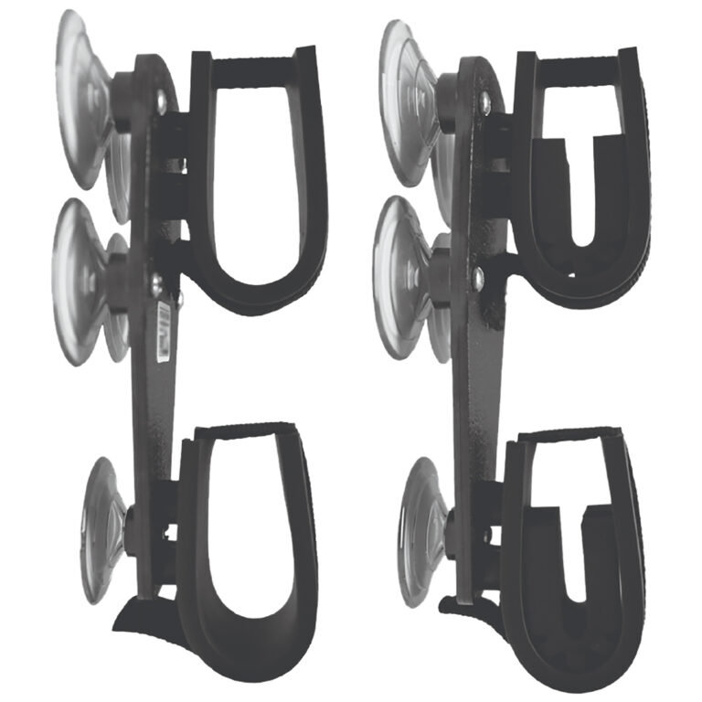 Rugged Gear's Suction Cup Gun Holder features suction cups that attach to vehicle windows or hard, smooth surfaces. It is easy to remove the cups by pulling on the tabs just as easy to reposition. This gun holder has a double hook for carrying two firearms or bows.
