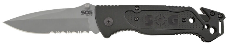 The Escape is the perfect size folding knife for everyday carry but still has a tremendous amount of capability with its one hand-opening blade. Integrated in the handle is a line cutter (perfect for cutting cord, string, seat belts, etc.), a glass breaker for extreme emergencies, our patent-pending wire stripper and extra line cutter blades (which are stored under the handle slab).