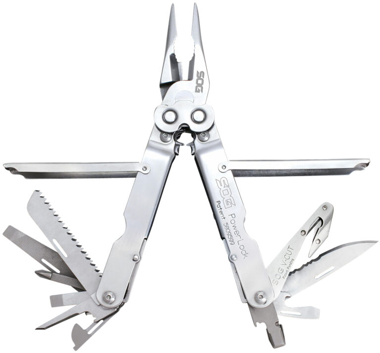 As one of the original multi-tool manufacturers, we have learned quite a bit over the years. Like how to make the toughest tools with patented gear driven Compound Leverage mechanisms. You have let us know, that quick access is a must. Just flip our tools out with one hand and see for yourself how well we listened. Versatility in the field is a necessity and heavy duty construction provides access. There is also a myriad of features that you might not readily see, like our saws cut faster and our files shave better. Tools- pliers, gripper, hard wire cutter, wire crimper, blasting cap crimper, double toothed wood saw, partially serrated blade, 3-sided file, large screwdriver, Phillips screwdriver, 1/4 drive, awl, can opener, small screwdriver, bottle opener, medium screwdriver, v-cutter and rulers. Includes sheath.