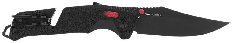 A folding knife designed for professional users, Trident AT features rapid assisted opening with SOG’s innovative ambidextrous AT-XR Lock, as well as integrated line cutter and glass breaker. Trident AT is easy to carry, with a highly functional 3.75″ cryogenically heat-treated D2 stainless steel blade. Its powerful AT-XR locking mechanism also features built-in blade locking safety and spine-mounted safety system. Features lanyard loop, line cutter, glass breaker.