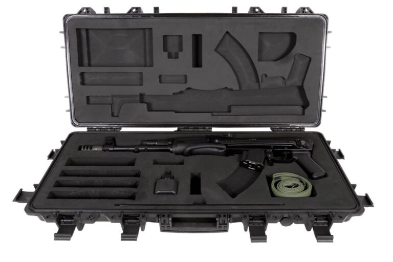 Purpose-built for the Arsenal SAM7UF this compact tactical rifle case is engineered to outperform. The high-impact shell IP67-rated seal and pressure valve protect against dust impact and full water submersion. Inside 3D contoured CNC precision-machined dual-layer foam in the lid and base suspends the rifle with cutouts for magazines ammunition and gear. Metal-reinforced mil-spec QD points allow confident carry through rain rivers and rough terrain. For mass movement the case’s stackable geometry per military requirements lets multiple units secure for transport by truck or cargo aircraft. This is the hard gun case built for warriors and guaranteed for life. Read more about the SAM7UF Eternity Case.