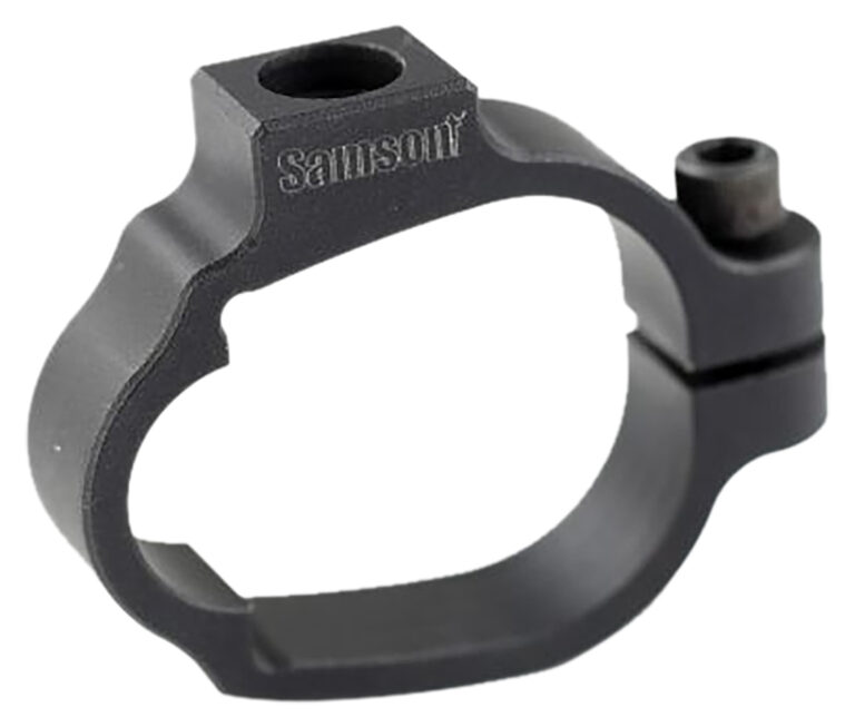 The Samson barrel band replaces the factory barrel band on Ruger 10/22 rifles and allows the attachment of a QD sling swivel. The band can be removed and flipped for the swivel mount to be located on the left or right side of the rifle. Features integrated QD sling swivel mounting point, barrel band can be flipped around to change QD mounting point from left to right side of firearm.