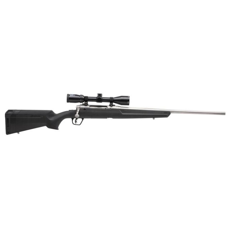 The redesigned AXIS II XP Stainless package rifle offers hunters even better out-of-the-box performance at the same affordable price. In addition to improved ergonomics the rifle is loaded with features that deliver tack-driving accuracy on every shot including the user-adjustable AccuTrigger a stainless steel button-rifled barrel thread-in headspacing and a factory-mounted bore-sighted Bushnell Banner 3-9x40mm scope.