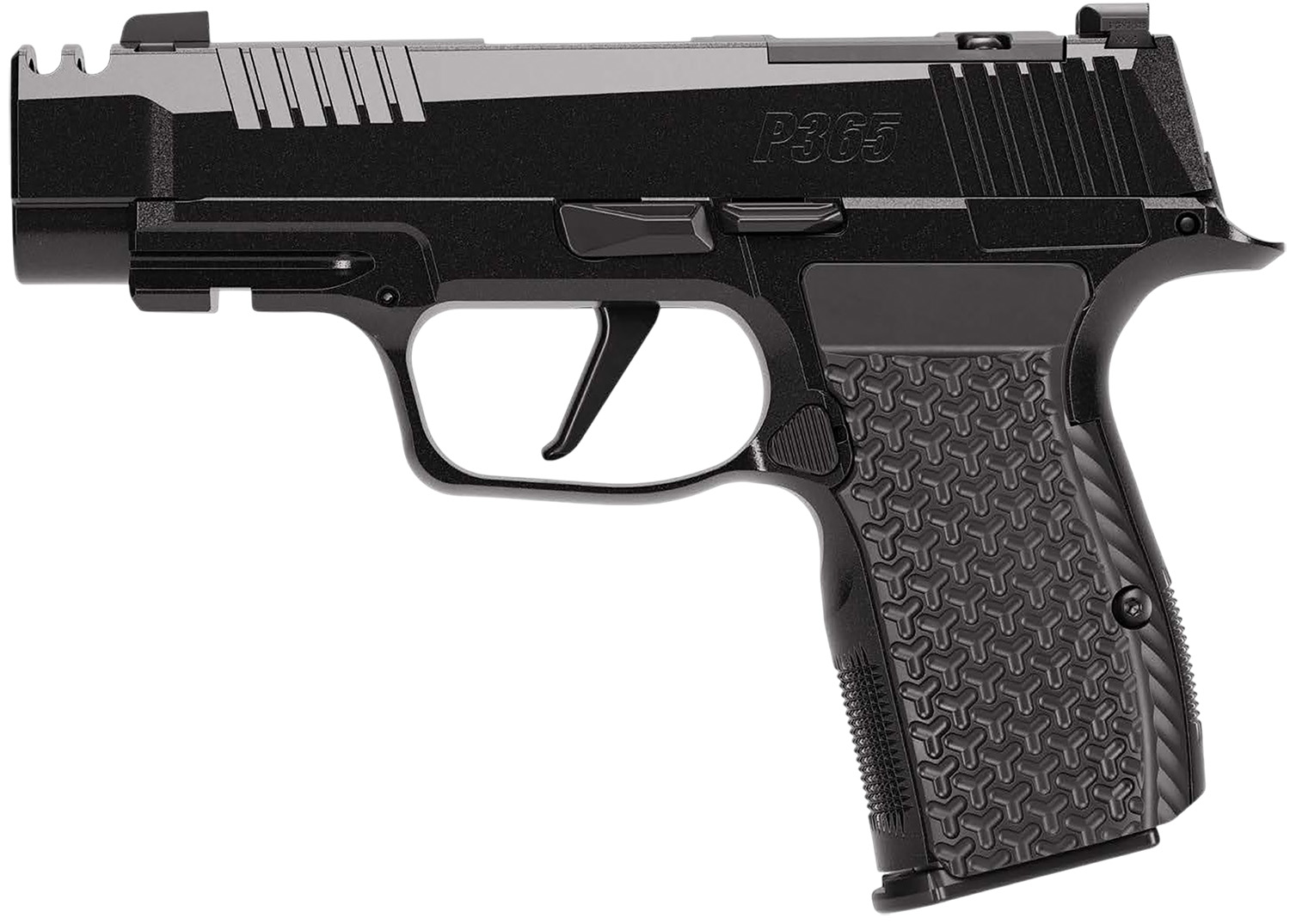 Designed for smooth racking, minimal felt recoil and flat shooting, the P365 LUXE was built around an AXG grip module for added weight and stability, a slide integrated compensator for reduced muzzle flip and a flat X-Series trigger; a luxe pearlescent black Cerakote with high polished black controls; XRAY3 Day/Night sights and LOK grips. XMacro holster compatible. Includes three magazines.
