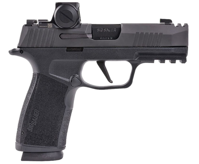 The P365-XMACRO Comp with the Romeo-X Compact red dot packs a full-size 17+1 round capacity into the thin, iconic profile of the P365. The P365-XMACRO is also more shootable, with an integrated compensator that reduces muzzle flip and makes follow-up shots faster and more accurate. With its slim, 1″ wide design the P365-XMACRO is more concealable. The pistol features a Romeo-X; XRAY3 day/night suppressor height sights; Macro-Compact grip module featuring standard 1913 Rail; integrally compensated slide and XRAY3 Day/Night Suppressor Height Sights. Includes red dot, two magazines and interchangeable small, medium and large backstraps.