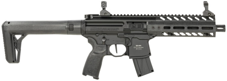 The SIG MPX redefined modern pistol caliber SBRs, and this Air Rifle version does no less for CO2 rifles. Matched to original model weight, balance, and controls, the SIG MPX Air Rifle puts more accurate performance into more accessible practice. Chambered in .177 pellet, features include an 8″ rifled steel barrel, synthetic handguard, Picatinny rail, tactical front grip, flip-up front, and rear sights.