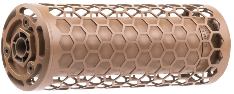 The Sig Sauer Next Gen Rifle Suppressor is a contract-specific high flow suppressor with a detachable titanium hexagonal heat shield. This Rifle Suppressor has multi-flow path that exhausts gases at a higher rate, resulting in lower toxic fumes venting from the ejection port. With a monolithic core construction for machine gun strength and durability. Includes: Integrated flash hider