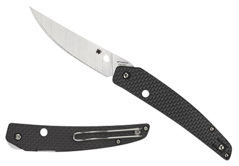 The ultra-slim Spyderco Ikuchi is a radically different approach to pocketknife form and function. Designed by Paul Alexander, the Ikuchi (pronounced ee-koo-chee and named after a mythical Japanese sea monster) has an elegantly curved handle crafted with full, skeletonized stainless steel liners and stunning carbon fiber/G-10 laminate scales.In the closed position, the handles narrow, open-backed profile completely contains the knifes bladeexcept for a small textured section of the tang that serves as a flipper opener. Stroking this section of the blade with an index finger or thumb provides leverage to swiftly pivot it into the open position, where it locks securely via the Compression Lock mechanism. The satin-finished CPM S30V stainless steel blade is full-flat ground for exceptional edge geometry and cutting performance and has an acute, scalpel-like point for detailed work.To ensure discreet carry while keeping the Ikuchi instantly accessible, its handle includes a low-profile, deep-pocket wire clip that is reversible for left or right-side tip-up carry.