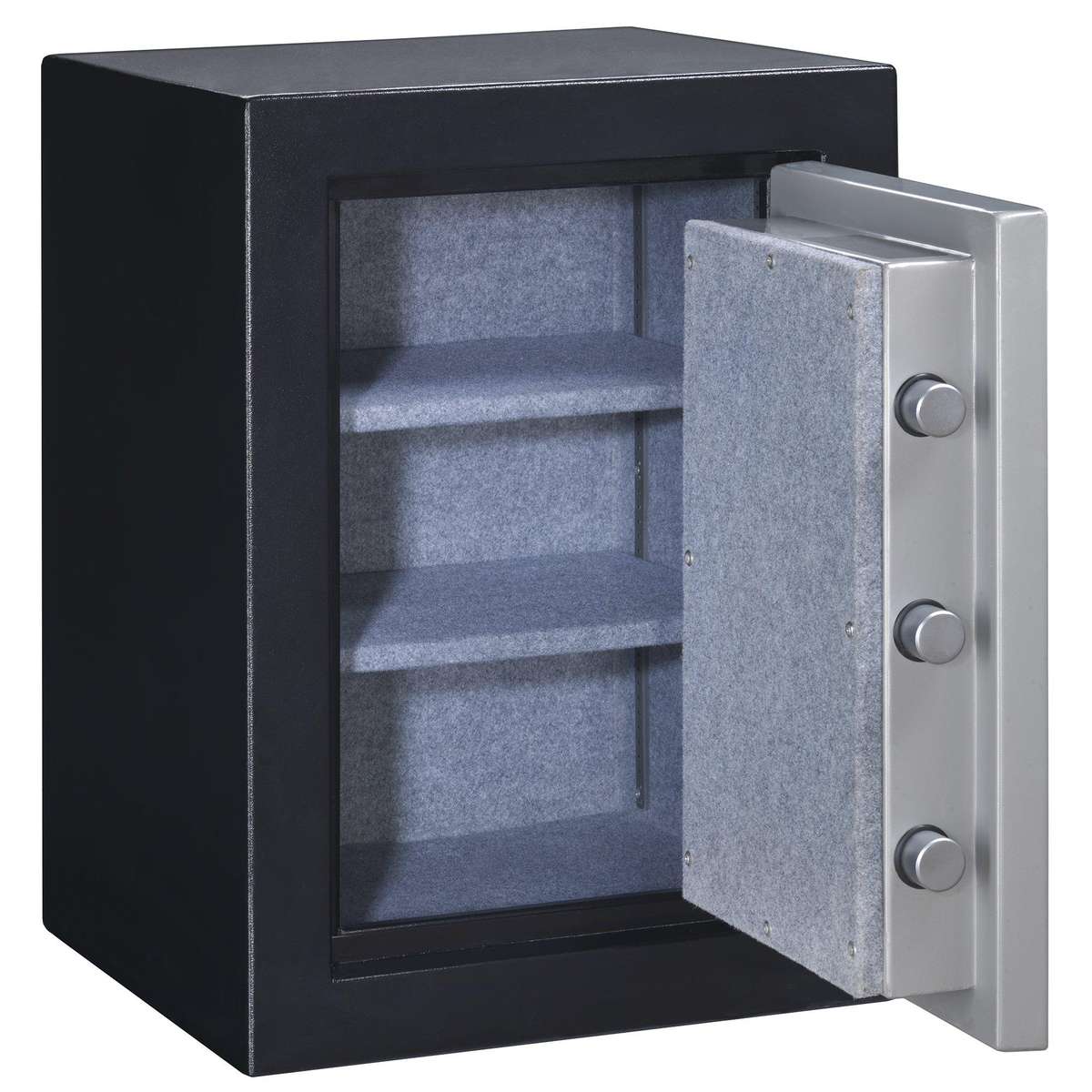 Elite safes are engineered to protect your valuables from fire and theft from the inside out. This 29? tall executive safe features an electronic lock; a chrome handle moves three solid-steel live-action locking bolts that combined with three deadbolts secures the door from prying theft. The fully-carpeted interior includes two adjustable-position shelves allowing custom configurations to best suit your needs.