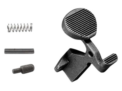 The Strike AR-10 Enhanced Bolt Catch is another piece in the SI line of high quality parts for the AR-10 market. This SI Enhanced Bolt Catch features an extra wide bolt catch lower lever surface and grooves for added grip which helps make its operation effortless. The widened bolt catch lower lever assists in the manual locking of the bolt carrier group to the rear. The solid construction and clean matte black finish make it a great looking replacement or an essential pick for a new build project.