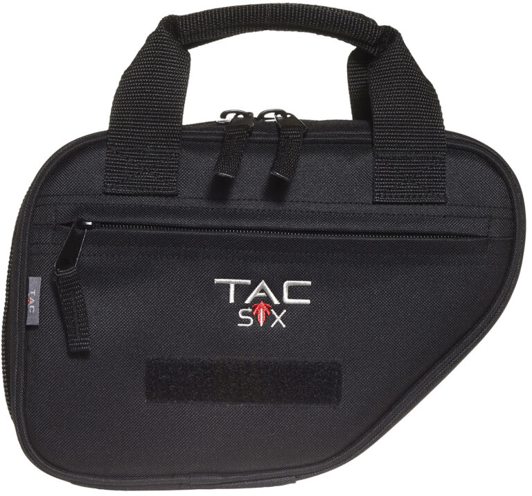 The Tac-Six Battalion Single Handgun Case features a Neoprene internal gun pocket and stretch magazine straps. The case also has an external accessory pocket and a filled carry handle.