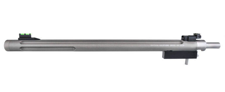 The Tactical Solutions X-Ring Takedown barrel has been designed as a highly accurate replacement barrel for your 10/22 Takedown. The barrel comes complete and includes a locking mechanism making installation quick and easy, with no gunsmithing required. This model has a gunmetal gray finish, 1/2″x28 threads and fiber optic sights.