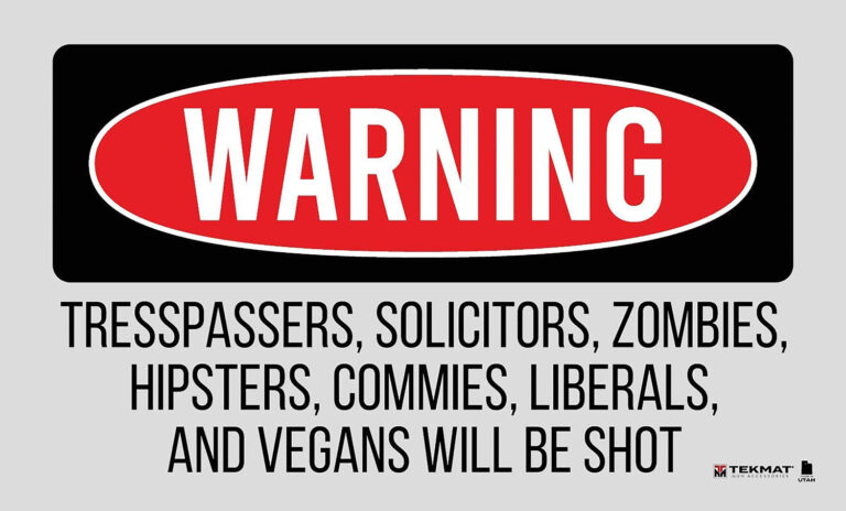 Trespassers Will Be Shot door/work mat is made of the same materials as a TekMat, 1/8 thick with vulcanized rubber that will keep the door/work mat from sliding. It is waterproof, washable, and oil resistant. The dye sublimated printing won’t wear off.