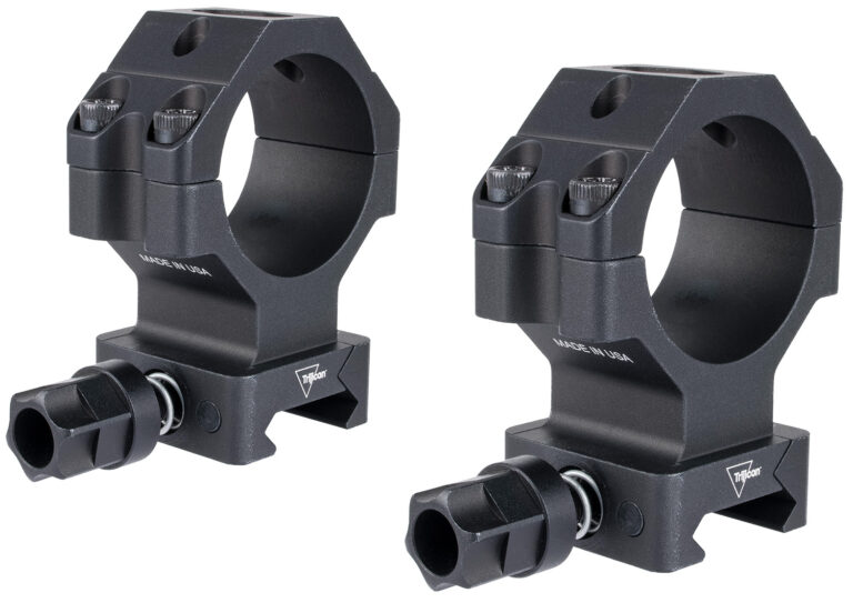 Trijicon Ring Mounts w/ Q-LOC Technology feature a 35mm tube, and are designed to keep the optic as low as possible for hunting and long range precision rifle applications. Featuring a Mil-Spec drop test rated 6061-T6 aluminum design and an easy to use one handed tool less mounting system. The spring-loaded design allows for constant retention and maintaining of zero even if the knobs are not tightened. The Ring mounts boast a low profile design with superior return to zero performance and are compatible with any Mil-Spec or NATO Picatinny rail. Designed specifically for variable power optics, these rings are perfect for mounting Trijicon variable power optics with an objective lens up to 56mm on any weapon platform with a full Picatinny rail.