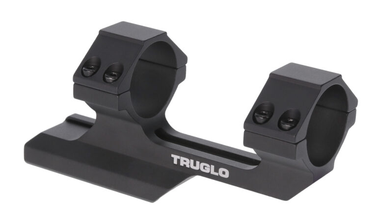 The TruGlo Tactical Scope Mount mounts to any Picatinny-style rail. It has a reversible one-piece base and has an integrated recoil lug.