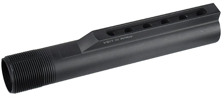 The UTG Pro Mil-spec 6 position diameter receiver extension tube for AR15 rifles. The extension tube is CNC machined from 6061-T6 aircraft grade aluminum with precisely rolled threads for durable thread engagement with the lower receiver. Finished in a matte black Type III Class II hard coat anodized. Made in USA.
