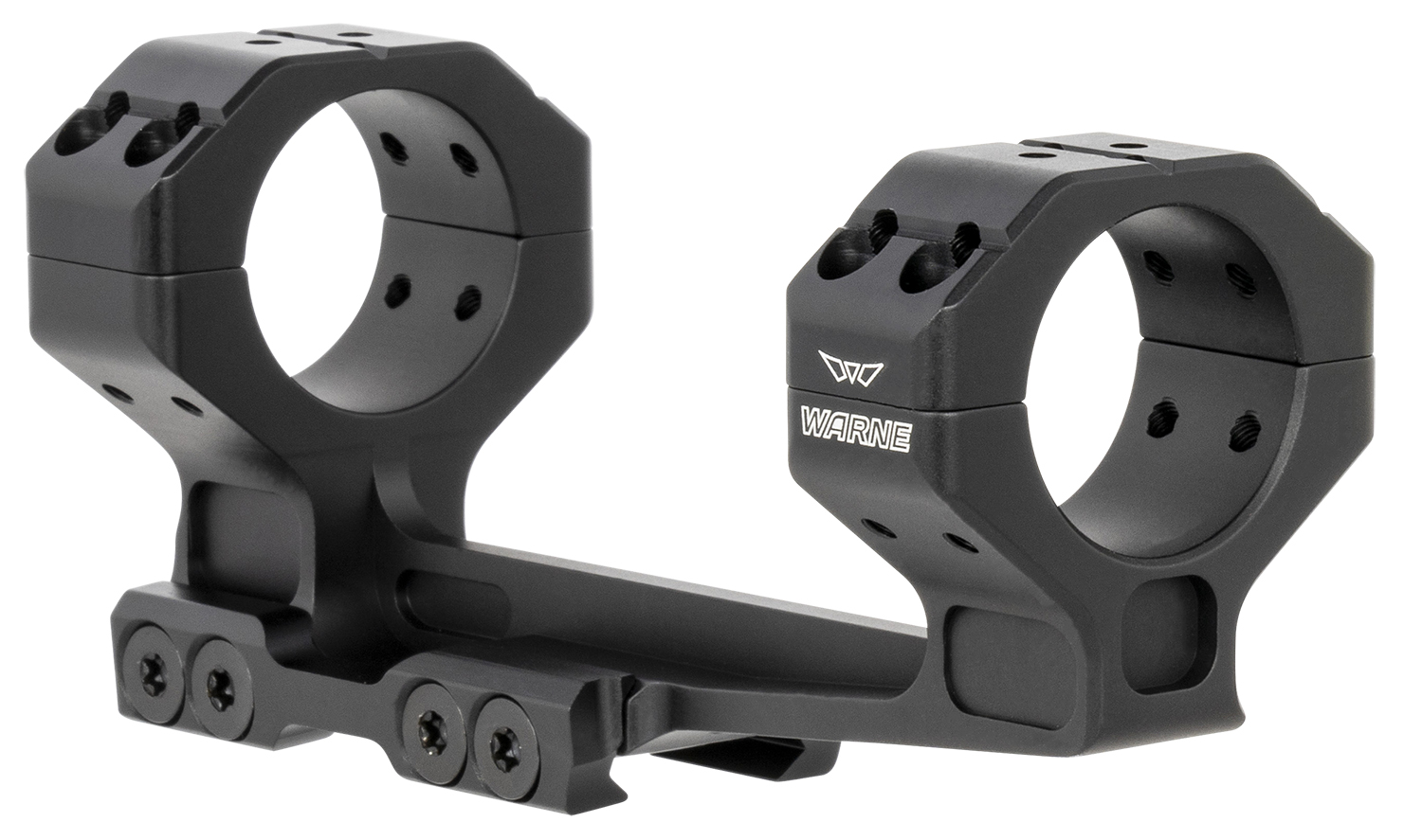 The Warne Skyline Precision Cantilever Mount has been engineered from the ground up with the MSR rifle shooter/competitor in mind. Machined from 7075 T6 aluminum billet, and featuring 2 integral recoil lugs along with 4 mounting crossbolts, the precision mount easily handles the rigors of competition or hard use environments while being at the ideal 1.54 height for AR type receivers. A generous 2″ cantilever provides optimal eye relief. The STANAG rail interface allows for more precise mount alignment and return to zero capability than a traditional Mil Spec 1913 Picatinny interface, still being compatible with all picatinny rails. The Warne Skyline Precision Cantilever Mount features a wide assortment of accessories that mount directly to 10 different locations on the scope rings.