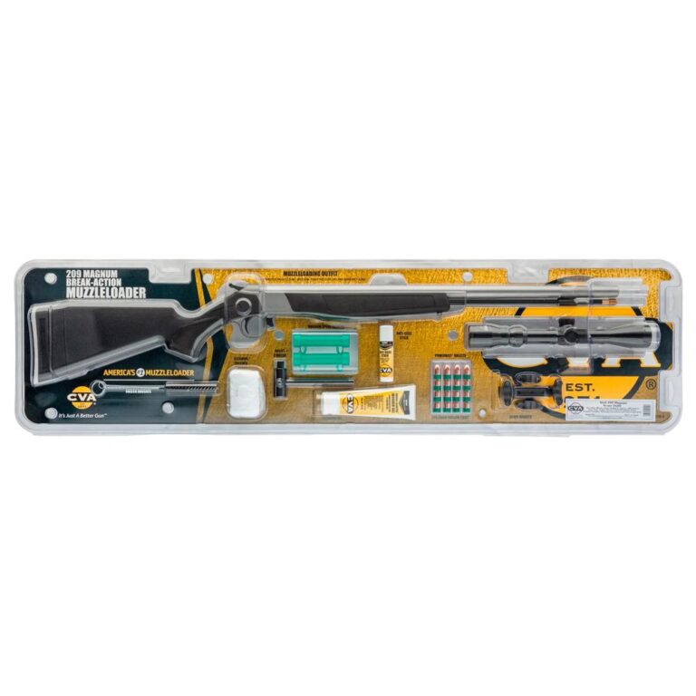 The CVA™ Wolf V2 Muzzleloader Scope Outfit includes all of the tools to start you on your muzzleloading adventure. The outfit not only comes with a CVA™ Wolf V2 muzzleloader but you also get a bullet starter bore brush cleaning patches wonder gel solvent anti-seize stick two magnum speed loaders and 16 PowerBelt™ bullets to get you started.