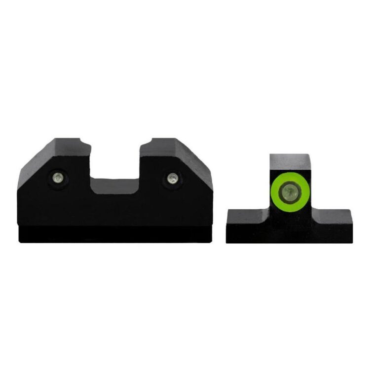 R3D Night Sights feature traditional 3-dot tritium notch and post sight picture. The tritium front sight comes equipped with our proprietary photoluminescent orange or green Glow Dot which absorbs ambient light and glows in low light. The 2-dot tritium blacked-out rear illuminates giving proper sight alignment while not outshining the front sight for accurate indexing. Our design increases focus on the front sight by using a brighter tritium vial in the front and using the tritium's light to charge the Glow Dot slightly. This slight difference makes the front sight glow more brightly than the two tritium vials in the rear keeping your focus downrange.