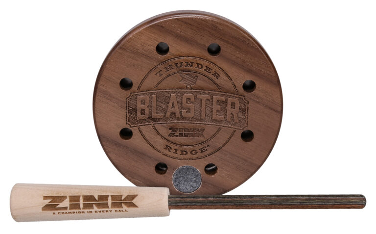 The Thunder Ridge Blaster is hand built and hand tuned. The aluminum turkey call with an innovative calling surface, bead-blasted aluminum calling surface – pre-conditioned and ready to go. No-skip striker control. Includes walnut pot with a built-in striker conditioning stone and custom Dymalux striker.