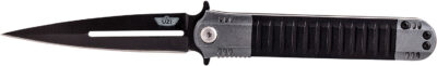 Uzi Accessories UZKFDR009 Covert 3.50″ Folding Spear Point Plain Black Stainless Steel Blade Black/Gray Aluminum Handle Includes Metal Clip