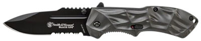 Smith & Wesson Knives SWMP3BSDCP M&P M.A.G.I.C. 2.80″ Folding Part Serrated Black Oxide 4034 SS Blade 4.30″ Aluminum Handle Includes Pocket Clip