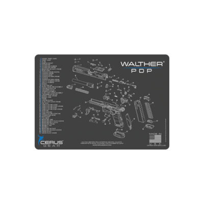 WALTHER® PDP® SCHEMATIC HANDGUN MAT – CHARCOAL GRAY/CERUS BLUE, 12″ X 17″
