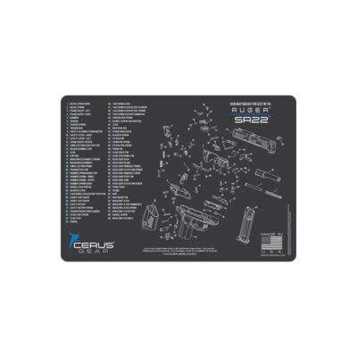 RUGER SR22 SCHEMATIC HANDGUN MAT – CHARCOAL GRAY/CERUS BLUE, 12″ X 17″