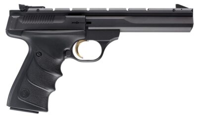 Browning 051421490 Buck Mark Contour *CA Compliant 22 LR 10+1 5.50″ Black Contoured Barrel, Matte Blued Aluminum Frame & Receiver w/Rail, Black Overmolded Grip, Right Hand